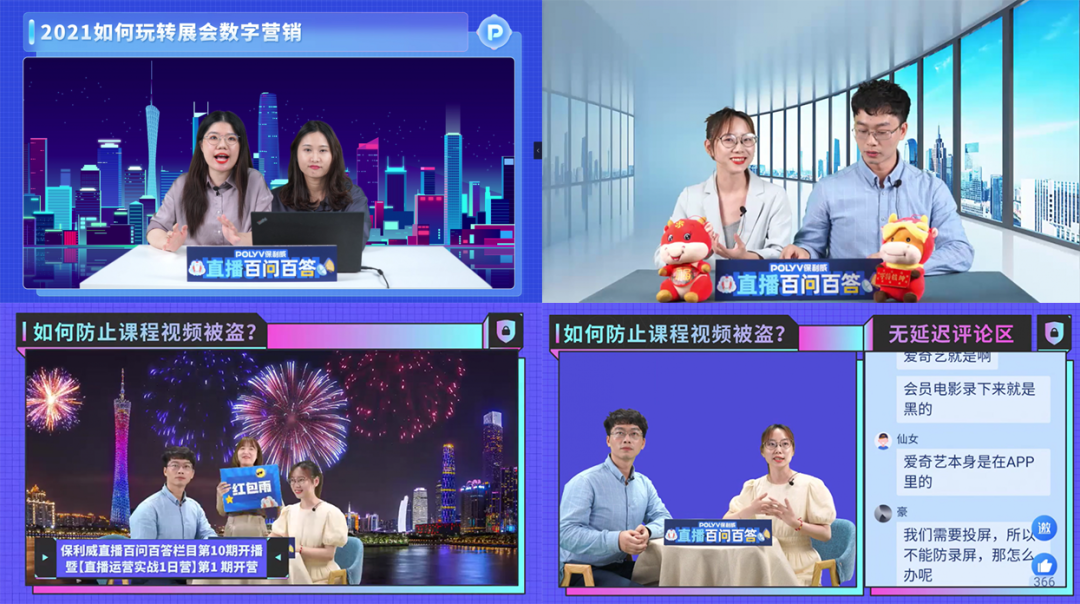 通过无延迟直播,保利威成功实现与异地嘉宾进行实时连线,配合上自定义的直播间装修和虚拟背景,持续打造出了一场场高品质的企业直播。