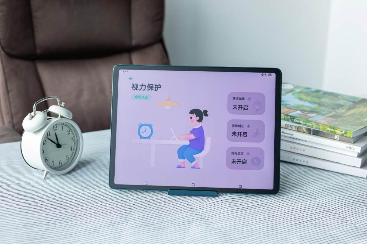 不管是期末复习,还是暑假自学,孩子每天都会较长时间地对着屏幕。说实话,这个时候我是挺担心孩子用眼健康问题的。所以拿到步步高家教机S6之后,我自己也先简单体验了一下。我发现这个屏幕看起来是真的舒服,因为用了九层散射屏的技术,屏幕表面是类似哑光的显示效果,不反光、不刺眼。亮屏后观感接近纸质书本,看起来还是蛮舒适的。我连续用了一个多小时,眼前也不觉得累。