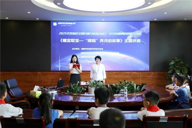 为点燃学生科学探索热情,厚植航天梦想,2025年9月23日,棠湖小学科技系列课程之“科学家进校园”活动在双流区科协的支持下,依托双流区全国科普月系列活动之“科学家精神进校园”活动在我校进行开展。本次活动以中国神话故事“嫦娥奔月”为主题背景,开展“蟾宫取宝—嫦娥奔月的故事”科技主题教育活动。活动特邀中国航天科技国际交流中心研究员周武老师进行主讲。棠湖小学四年级十一班全体师生共同参与这场航天知识盛宴。