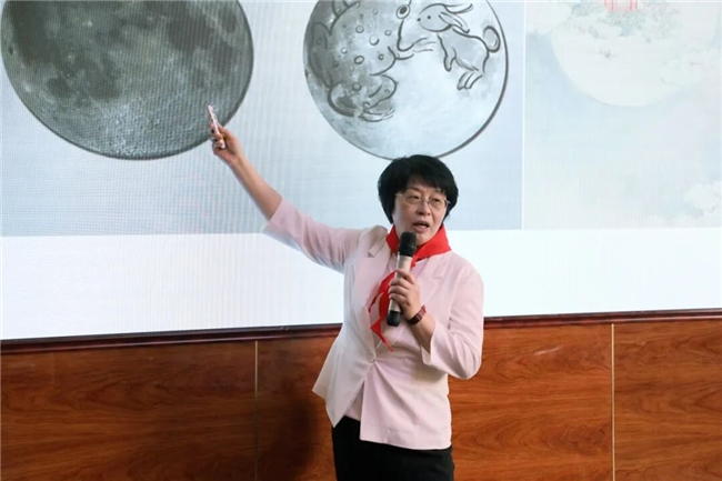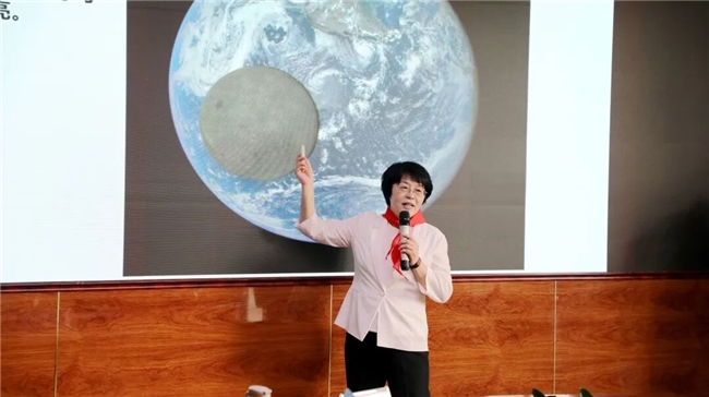 随后,周武老师以“蟾宫取宝——‘嫦娥’奔月的故事”为主题展开讲座。她结合自身专业知识与航天一线经验,从月球起源的科学奥秘切入,逐步深入讲解嫦娥探月工程的发展历程、技术突破与重要成果。