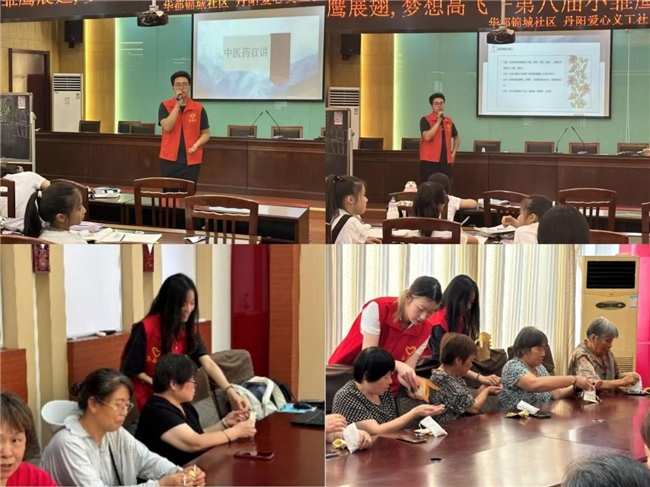 团队成员们以生动的语言讲述千年来康养中的故事,以细致周到的服务温暖每一位居民。从耳穴埋籽到花茶共饮,从三伏贴体验到穴位教学,岐黄悬济实践团以自身行动践行文化自信,以不懈努力传播文化火种,将中医药文化传承发扬与基层笃行服务有机结合,让中医药文化深入基层,让青年力量助力社会发展。