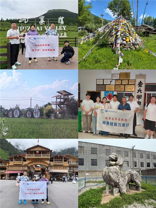 团队成员们走进省传统村落东王村,探究健康生活方式,传递健康理念;走进新疆草原,赏牛羊遍野,感受自然风光;走进九寨沟三寨居所,探究传统建筑,了解历史文化,学习民族风俗......岐黄悬济实践团以青春之笔共同描绘中华文脉地图,展现南中医学子精神风貌,贡献青年力量。