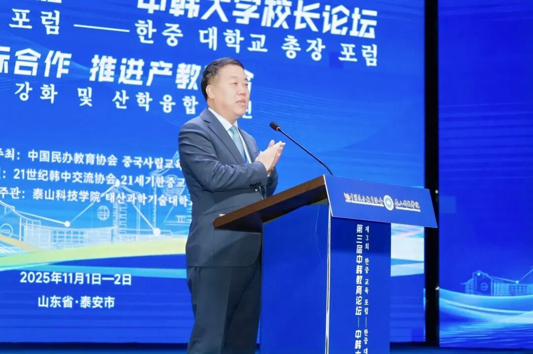 11月1日,在教育部的指导支持下,由中国民办教育协会、21世纪韩中交流协会、泰山科技学院共同主办的第三届中韩教育论坛——中韩大学校长论坛在山东泰安隆重开幕。