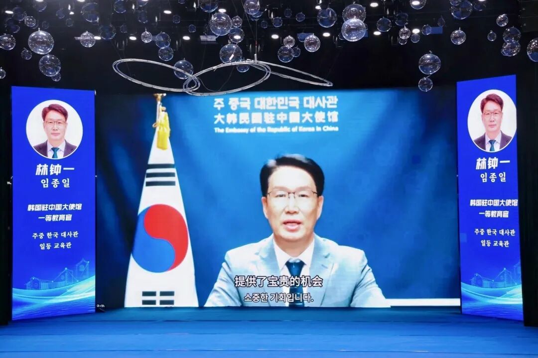 韩国驻中国大使馆一等教育官林钟一通过线上方式致辞,表示教育合作对韩中关系长远发展具有战略意义,大使馆将一如既往支持此类交流活动。