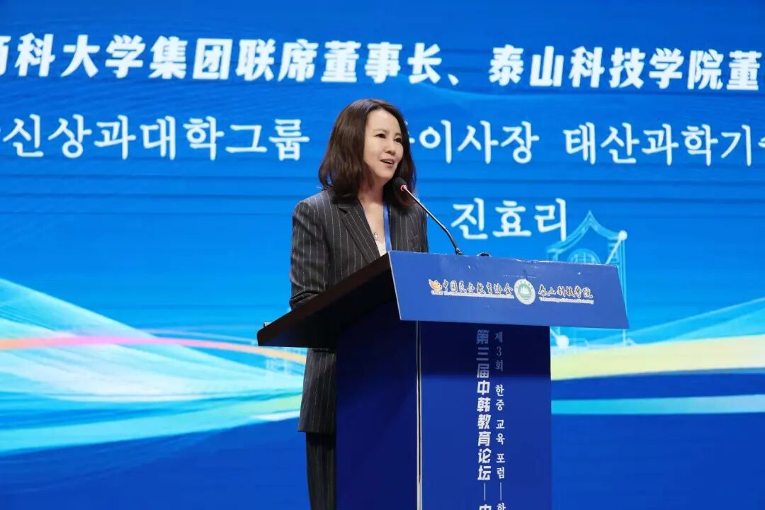作为东道主,泰山科技学院全面展示了其在“书院制育人”与“产教融合”方面的创新实践,为两国高等教育合作提供了基层高校的鲜活样本。学校董事长陈晓莉表示,学校致力于推动国际化办学从“引进来”向“走出去”转型,期待以论坛为契机,与中韩教育界共享经验、共谋发展。