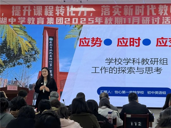 怡心第一实验学校以“应势·应时·应变”为核,分享学科教研组在集体备课中构建“四有课堂”(有趣、有效、有参与、有思维)的课型建模经验;