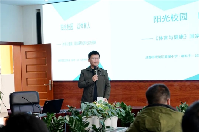 棠湖小学副校长杨东宇以《阳光校园 以体育人》为题,围绕学校体育工作的顶层设计与课程规划,课堂奠基与学练赛评,班级联赛与活动提升,业训选拔与贯通培养及教师队伍等多维度全面展示《体育与健康》国家课程校本化实施策略,充分发挥体育的育人功能,真正让学生们从享有体育到享受体育。这套科学完备、行之有效的实践体系,为各兄弟学校提供了可借鉴、可复制的校本化实施范例,赢得了甘孜州教育同仁的深度认同和高度评价。
