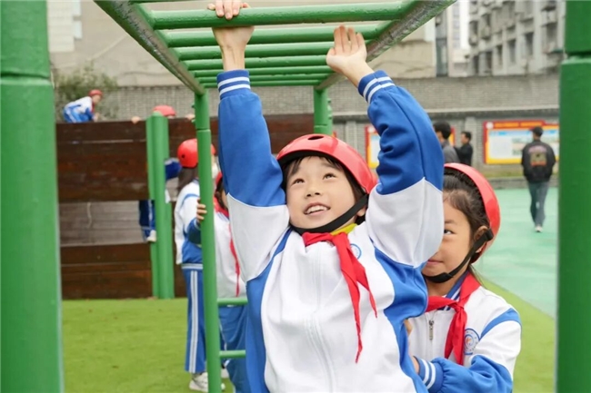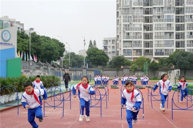 代红梅老师巧设挑战情境,将跑道变为挑战乐园,层层递进,孩子们在翻越、钻爬、跳跃中不仅锻炼了灵敏与力量,更在冲破一道道“障碍”时,脸上绽放出自信与勇敢的光芒。