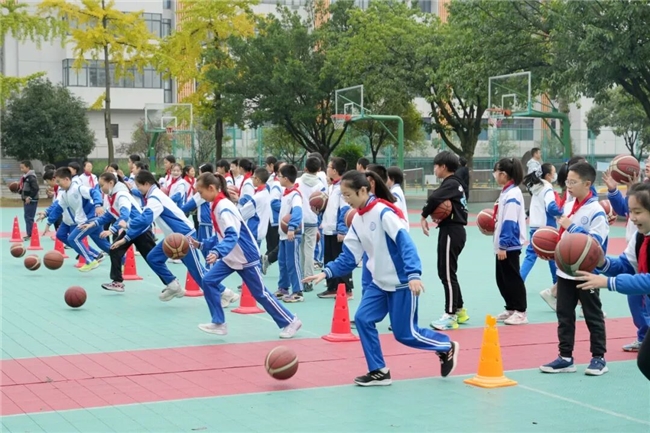 朱凯旋老师的课堂组织严谨有序,指导精准到位,以独创的训练方法,让学生在游戏中轻松掌握运球技巧,展现出扎实的基本功与团队精神。