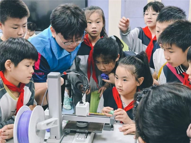 活动尾声,孩子们还在志愿队准备的3D打印“心愿卡”模板上手绘“我的科技报国梦”:有的画下“用3D打印造航天飞船”,有的写下“当会做火箭模型的科学家”,稚嫩的笔触与工业风的打印模板相映,让“科技报国”的种子,以更贴近时代的方式落在了孩子们心里。