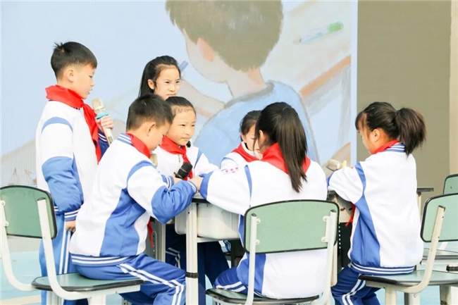 升旗仪式结束后,四(3)中队的队员们精神抖擞地走上展示台,情景剧《不被标签定义的温暖》率先登场。队员们凭借生动的演绎,再现了校园生活中打破刻板印象、用理解与包容化解隔阂的暖心故事,传递出“拒绝标签化,用心感知每个生命的独特美好”的关爱理念,引发在场师生的强烈共鸣。