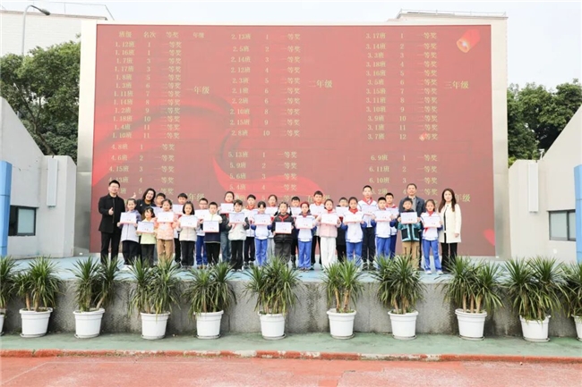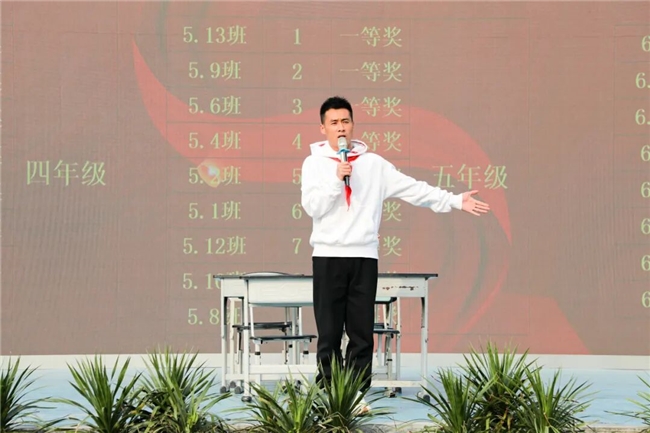 德育处安全处王翔宇老师对棠湖小学第39届"成功杯"田径运动会作总结并组织颁奖。