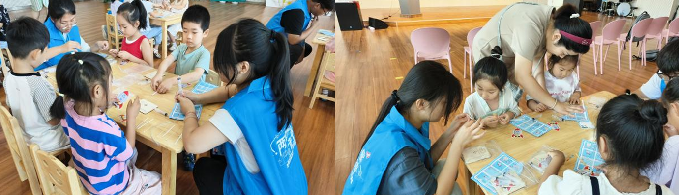 (图为“星辰引航”社会实践队指导幼儿园学生制作《冲天小火箭》 高萌供图)
