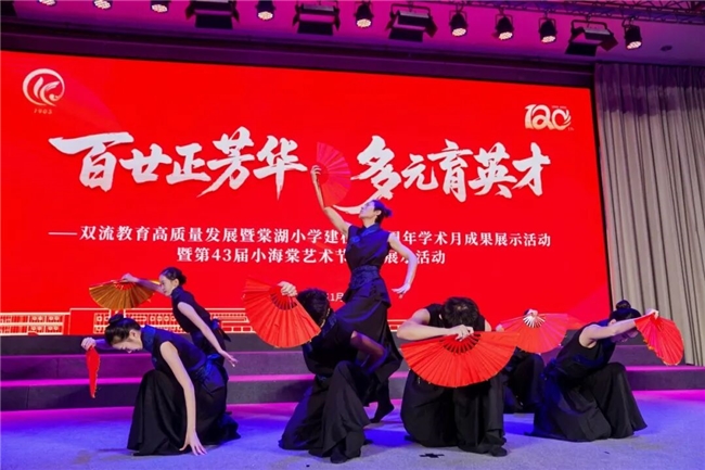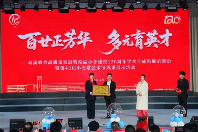 在棠湖小学建校120周年学术月暨第43届小海棠艺术节成果展示活动的璀璨时刻,西南民族大学艺术学院石榴籽艺术团的精彩演出,为艺术成果展演活动增添了一道亮丽的风景线。由西南民族大学艺术学院符辉院长亲自指挥的混声合唱《爱永在》,温暖了每一个人的心房;舞蹈学院张巍巍、桑斯尔老师编导的民族街舞《气贯潮涌》,则展现了力与美的完美融合。这不仅仅是一场表演,更是两校友谊与合作的见证。随后,符辉院长亲手将“就业与教学实践实习基地”的牌匾送到了杨柳书记的手中,标志着双方合作迈入了一个崭新的阶段。