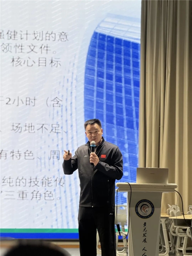 教育部等五部门于2025年11月7日发布《学生体质强健计划》,提出“每天2小时综合体育活动”“构建全员竞赛体系”等核心要求。为助力新政落地,四川师范大学体育学院副院长颜海波教授走进成都市双流区棠湖小学,以“体质强健计划执行:中小学体育教师行动地图”为主题开展交流指导,通过深度拆解政策要点,旨在结合学校体育育人实践,为参会老师呈现可复制的实战样本,推动“健康第一”理念扎根校园。