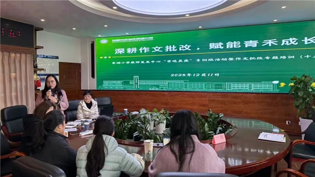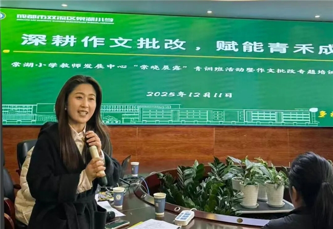 “以评促教明方向,深耕批改助成长”。作文批改是语文教学的关键环节,更是赋能学生写作能力提升的重要抓手。为帮助青年教师精准把握作文批改核心要领,切实提升专业教学能力,2025年12月11日下午,成都市双流区棠湖小学“棠晓晨露”青训班以“深耕作文批改・赋能青禾成长”为主题,开展了本学期第十五次专题研修活动。活动由教师发展中心陈彦羽主任主持,青年教师积极参与,李红艳副校长全程指导。