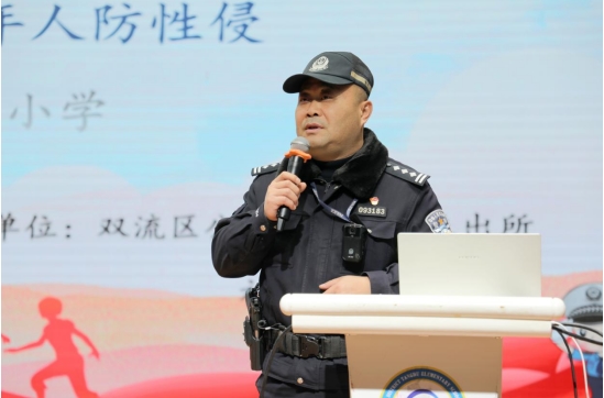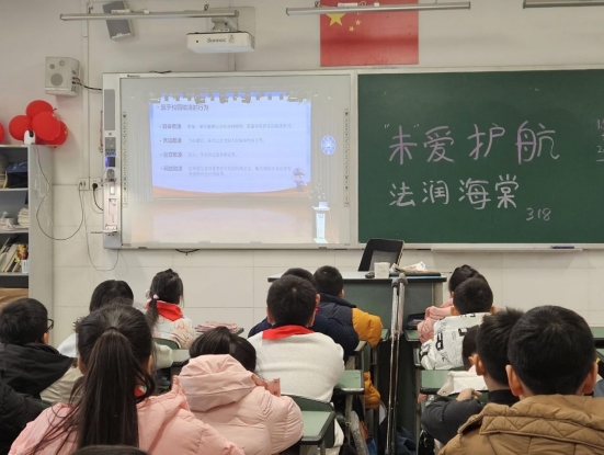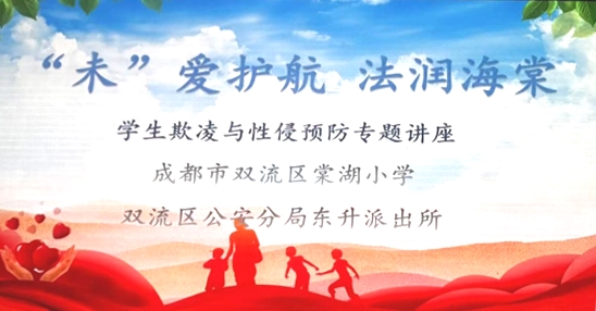 为筑牢校园安全防线,护航未成年人成长,2026年1月5日,成都市双流区棠湖小学利用班会课时间,特邀东升派出所柏根旗警官开展“‘未’爱护航 法润海棠”学生欺凌与性侵预防专题讲座。分管安全副校长徐李、安全主任许巍全程陪同,保障活动有序开展。活动以“现场+直播”模式覆盖全体师生。