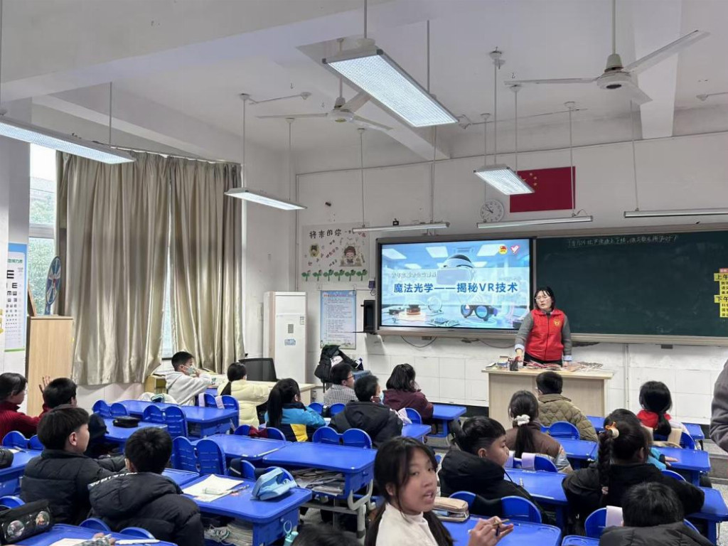 2025年12月23日,一场别开生面的“魔法光学——揭秘VR技术”科普体验活动在学府小学生动开展。浙江工商大学杭州商学院“管”爱童行青年志愿者宣讲团通过理论讲解、手工制作与沉浸体验相结合的形式,为孩子们揭开了虚拟现实技术的神秘面纱,在动手动脑中播撒下科技探索的种子。