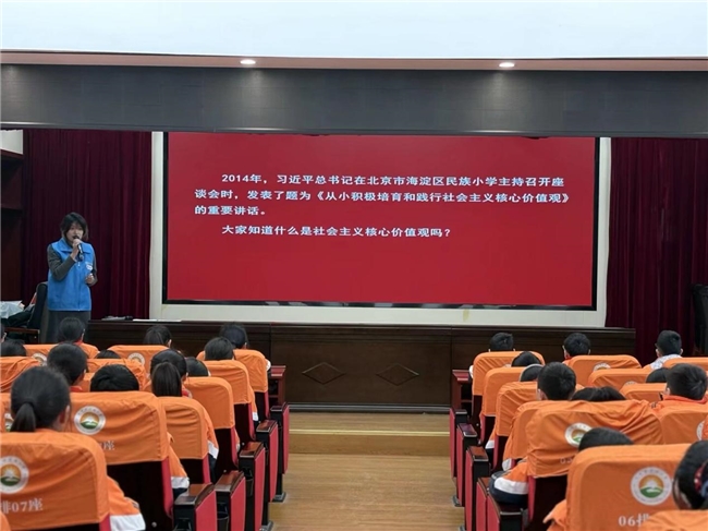 在第二场宣讲中,志愿者王希颜以社会主义核心价值观为主线,围绕“富强、自由、爱国”三个关键词展开探讨。通过讲述钱学森、苏炳添、陈祥榕等榜样故事,引导孩子们理解什么是真正的爱国、如何在小事中践行责任。现场还设置了“祖国旗帜在我心”手工环节,同学们在志愿者指导下亲手制作五星红旗,在动手过程中深化对国家象征的认知与情感认同。