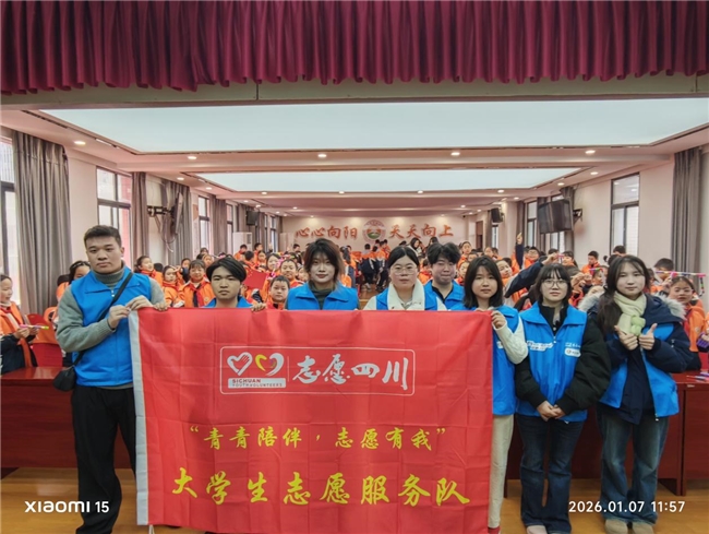 为积极响应四川省青年志愿者服务中心、四川青年志愿者协会组织开展的“青青陪伴·志愿有我”大学生志愿服务专项行动,2026年1月7日,巴山星火·燎原传辉志愿服务队走进四川省巴中市中坝小学,开展了一场以“童心相伴,安全‘童’行”为主题的志愿活动。本次活动聚焦青少年儿童的成长需求,围绕“安全、兴趣、心灵”三大内容,通过生动讲解、互动体验、实践手工与户外拓展相结合的方式,为150余名学生带来了一次有意义、有温度、有启发的志愿活动。