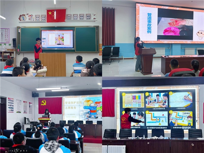 此次活动紧扣国家能源安全建设要求,以一节知识宣传为基础、多种实践活动并行的课程形式普及管道保护知识,提升小学生安全防护能力。志愿队聚焦小朋友的安全知识普及需求,精心适配活动内容与讲解方式。志愿者以通俗易懂的形式,简化讲解管道的功能价值、管道破坏的环境危害及日常防护要点,并结合贴近生活的真实案例与场景模拟分析,便于小学生们能够直观理解管道保护的重要性。
