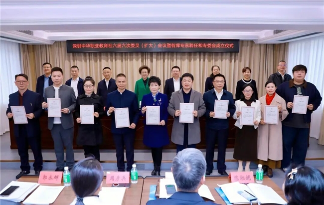 会上成立了科技创新与产业创新深度融合专门委员会、“一老一小”专门委员会,并为第二批智库专家、2025年度“优秀团体社员”“优秀社员”颁发了聘书和证书。会前召开了深圳中华职教社六届十四次主任会议。