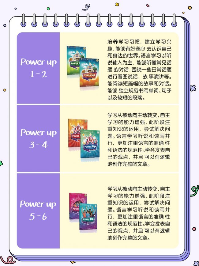 课程体系权威性:采用由剑桥大学出版社与剑桥大学英语考评部首次联合出版的PowerUp