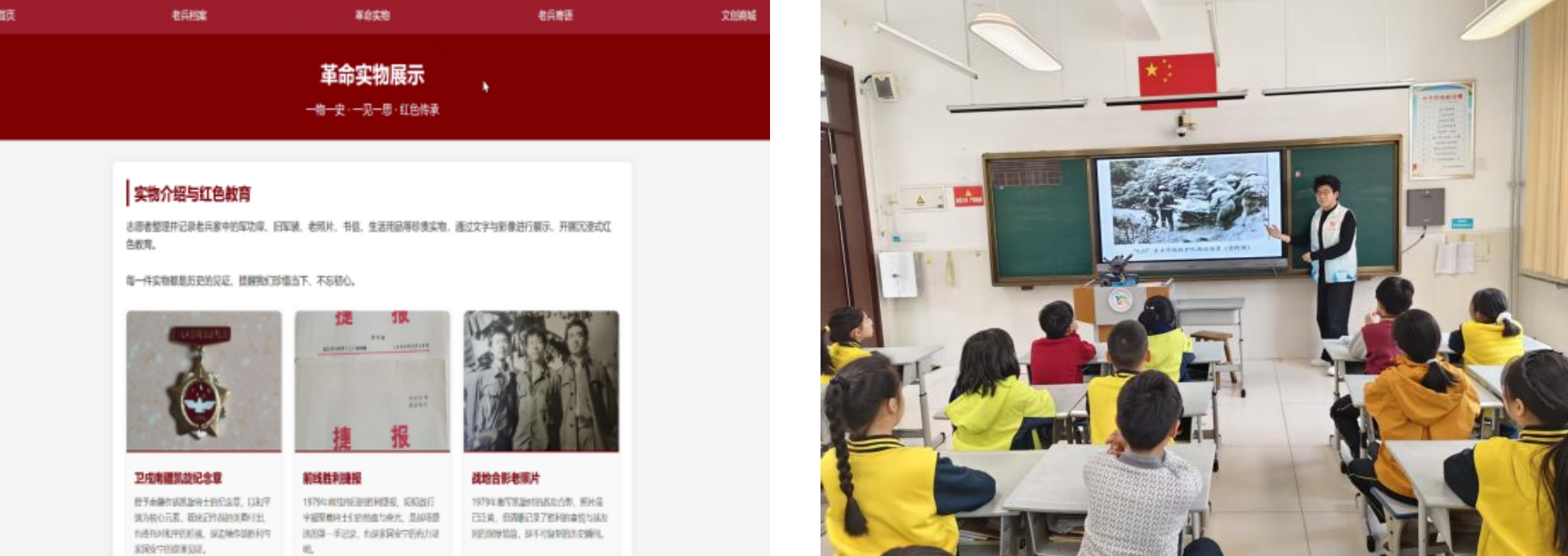 针对青少年们,团队打造了戴上眼镜“走进老山战壕”听老兵原声讲述和线上“戎光数字纪念馆”特色活动,开发VR课程走进20所中小学,通过情景演绎、老物件展览等形式,让红色精神融入新一代青少年的生活。项目累计服务89位对越作战老兵,建立“四维数字记忆档案”89套,采集口述史4200分钟、实物扫描件2100余份,不仅为协助解决老兵实际困难37件,更让356名青年志愿者在陪伴中接受精神洗礼,实现“陪一位老兵、传一段军魂、育一代新人”的连锁效应。