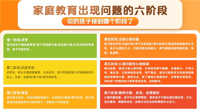 在青少年成长与家庭教育领域,厌学、手机成瘾、亲子对立、学习动力不足早已成为普遍难题。一组面向中小学家庭的调研显示,超七成孩子存在厌学情绪,近两成孩子频繁请假甚至拒绝上学,无数家庭陷入“越管越糟、越催越废”的困境。