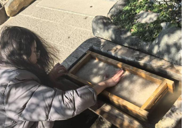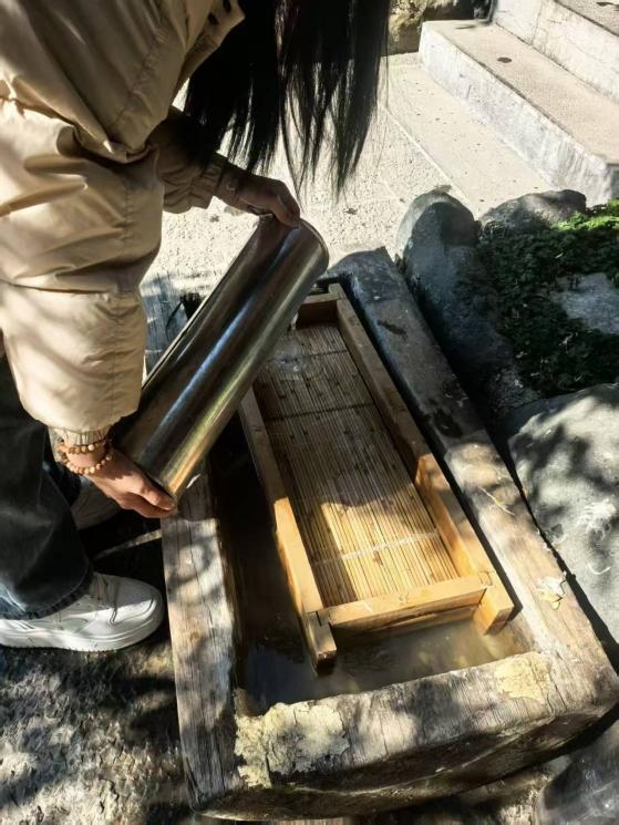 在白沙古镇,团队成员在传承人的指导下,亲身体验了构树皮采集、浸泡、蒸煮、抄纸等东巴纸制作全流程。“只有亲手做过一遍,才能真正理解‘纸寿千年’背后的匠心与智慧。”项目视觉总监王泉鑫在体验后感慨道。团队还系统记录了大量东巴象形文字的一手素材,为后续文创产品的视觉设计积累了宝贵资料。